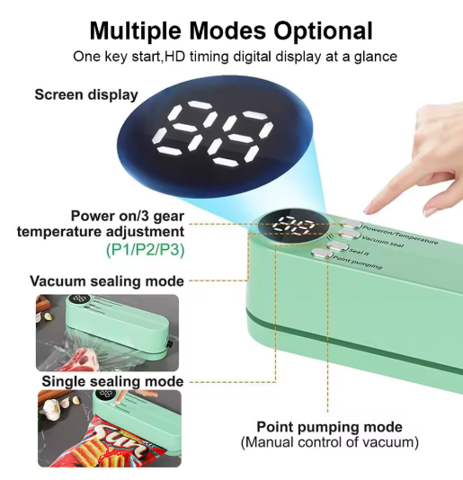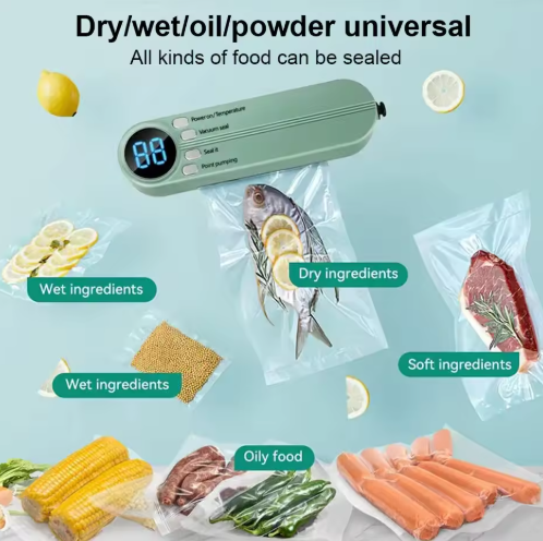 La Selladora al VacĂo ElĂ©ctrica elimina el aire de las bolsas y mantiene tus comidas frescas, sabrosas y protegidas hasta 5 veces mĂĄs tiempo. Ideal para carnes, verduras, frutas, snacks y mĂĄs. đđ„©